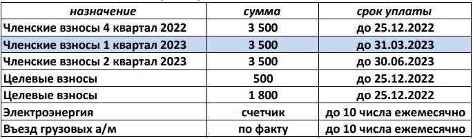 Напоминаем о сроках уплаты членских и целевых взносов: