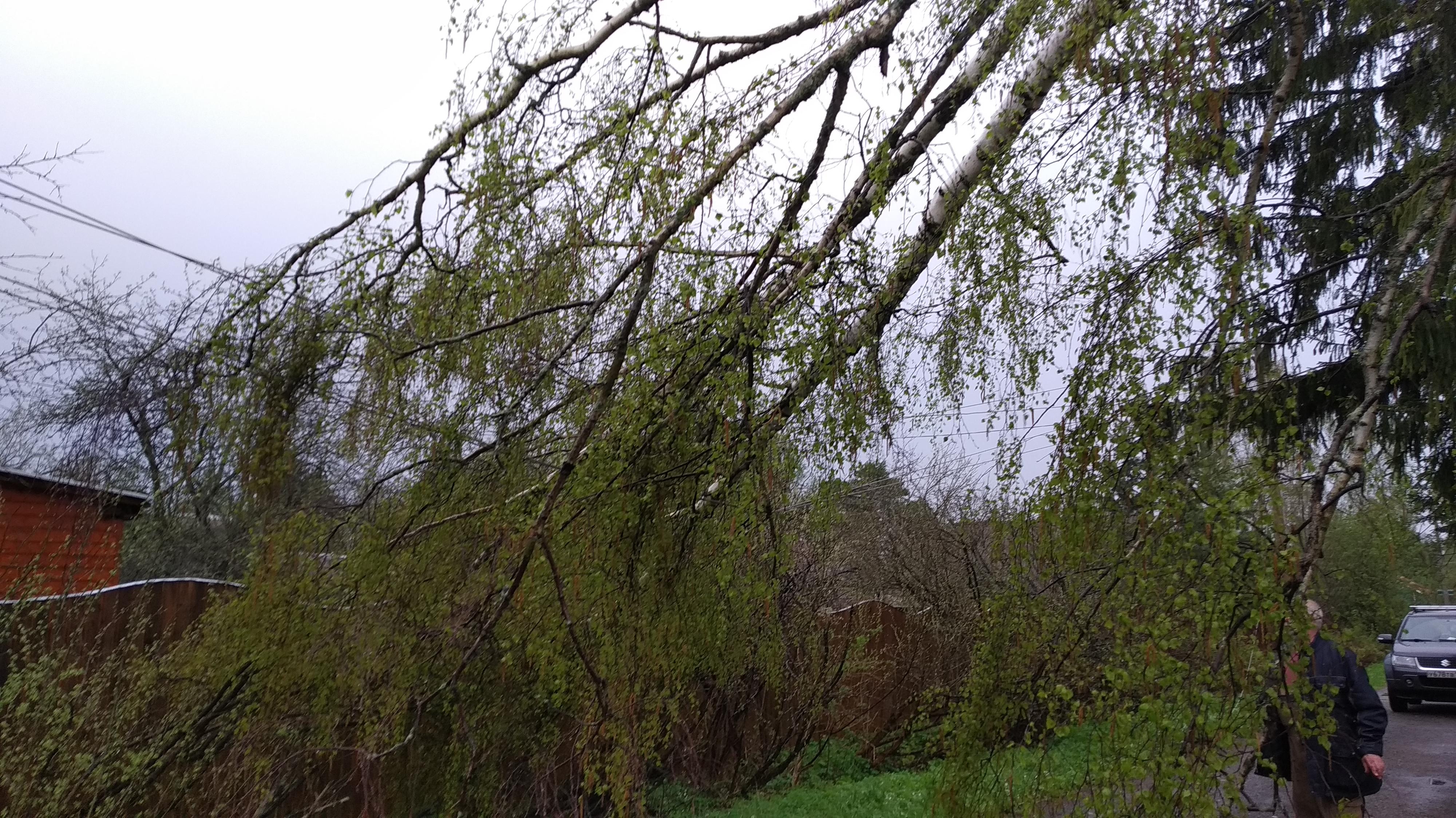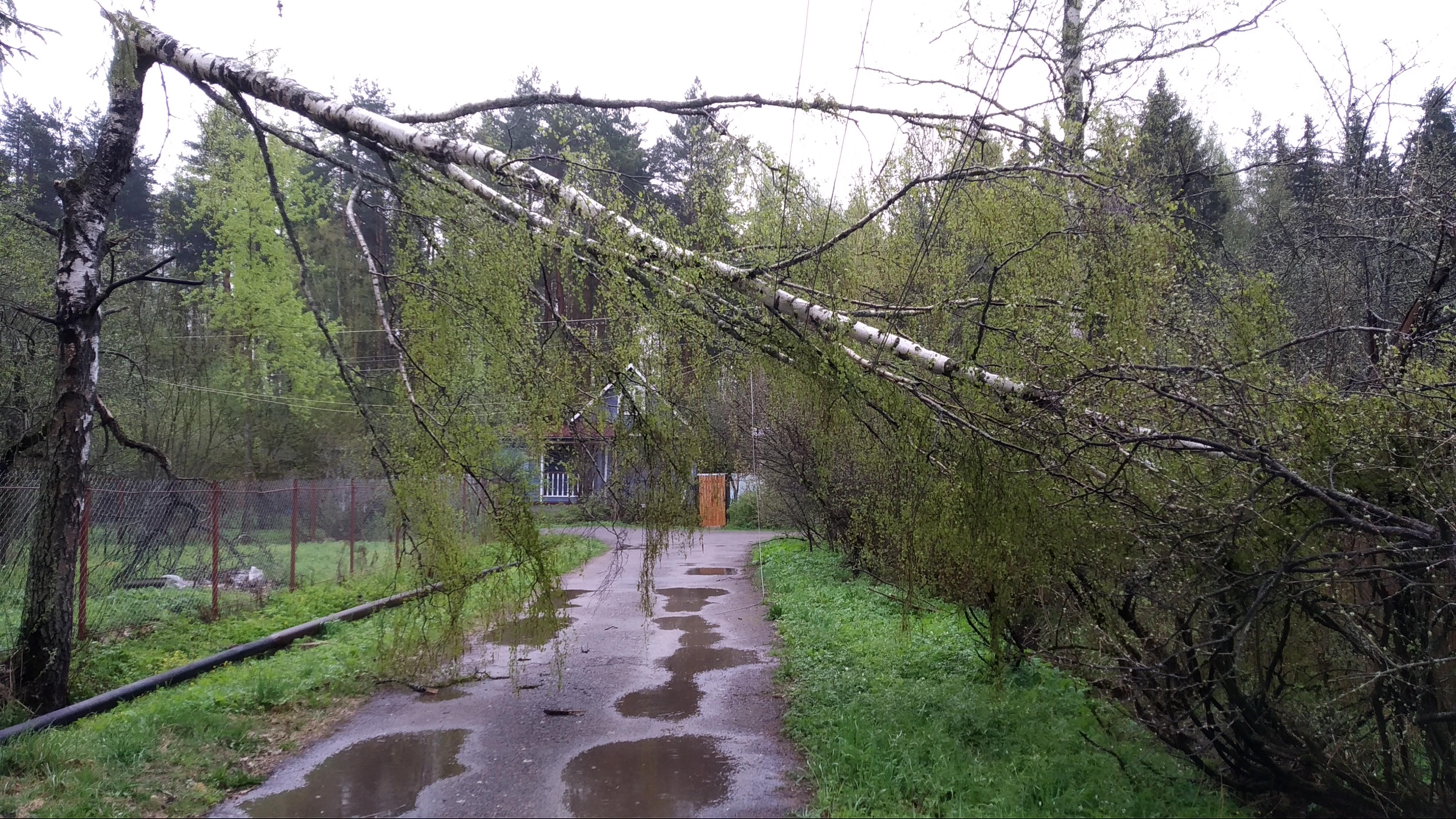 12.05.2021 Под вечер сломало берёзу на второй поперечной улице, ближе к пятой продольной. Очевидцы утверждают, что попала молния.Оборвало и замкнуло провода. Из за этого наблюдалось повышение напряжение в сети до 300 вольт.
